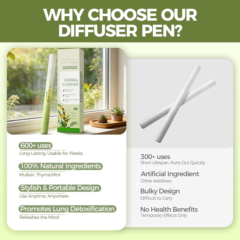 Pure Herbal Diffuser Pen: Made with pure natural extracts of mullein, thyme, and peppermint—free from artificial fragrances and irritating chemicals. Gentle and safe to use