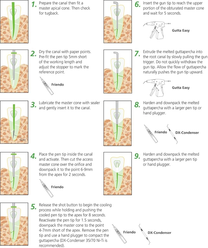 - Used in any common obturation technique and condense gutta percha under pressure
