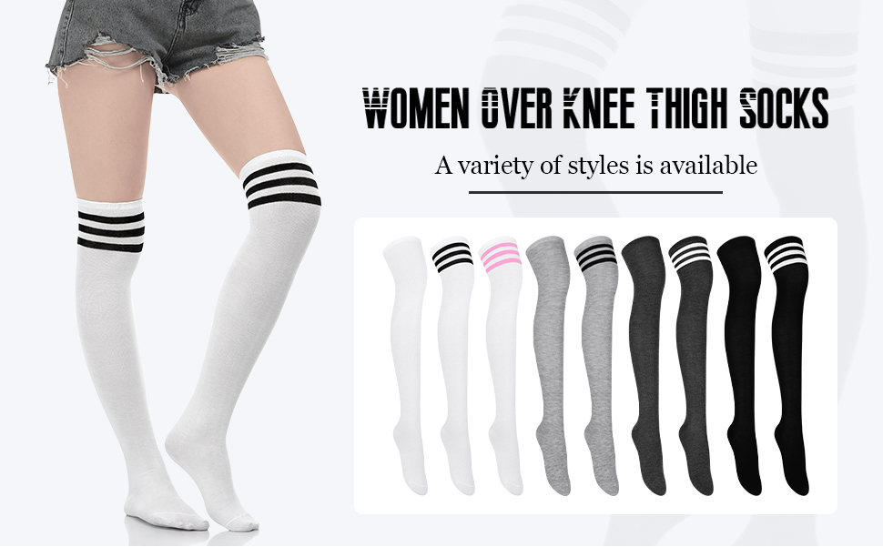 Versatile socks: these over-the-knee socks can be matched with various styles of clothing, such as mini skirts, shorts, boots, ankle boots, espadrilles, loafers, sneakers, long coats and more, also wonderful additions for dance, party, cosplay, stage show, etcs., you can also give them as attentive gifts for your family and friends