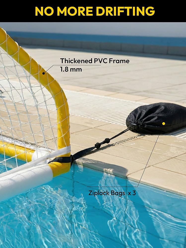Stay In Place: No more drifting goals! Includes 3 sealable stabilizer bags you can fill with sand or water to anchor the goal in place. A unique design upgrade that keeps your water polo net steady during intense games