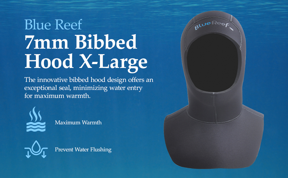 Cold water won't stop you with your experience underwater with the Bibbed Hood from Blue Reef-your secret ally against the chill and thrill. It is made for divers who are seeking significant value and demands for warmth because of the 7mm thickness. With a trim-to-fit face seal, it will allow you to match unique facial contours for a custom fit. Blue Reef designed this bibbed hood with a combination of maximum warmth and secure fit from the materials made, which are neoprene and nylon. It also provides insulation because of the 7mm thickness, while the glued and sewn flatlock seams will ensure durability and let you dive in comfort. The bib easily tucks into your wetsuit and creates a great seal to prevent water flushing. It is offered in different sizes from small, medium, large, x-large, and xx-large. Whether you're diving in chilly waters or need simple and reliable layering, Blue Reef will not let you down and will just deliver superior warmth, custom fit, and functionality.