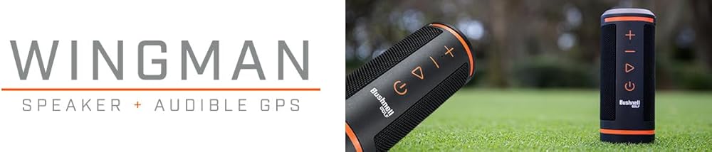 Bushnell Wingman, the world's first golf GPS speaker to combine high-quality audio with the ability to receive audible GPS distances.