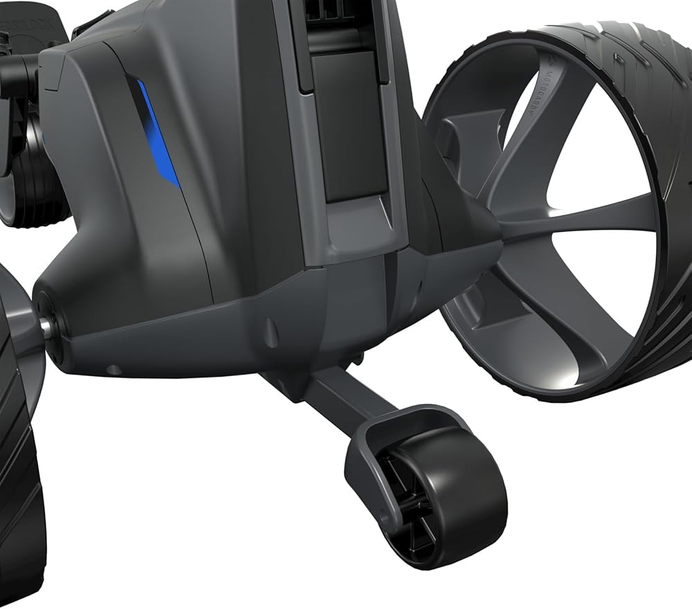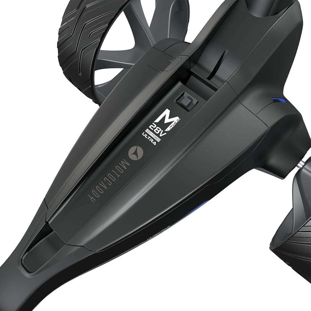 Motocaddy New M5 GPS DHC, the latest 2024 model includes a revolutionary new CLICK ‘N' CONNECT cable-free battery with auto-disconnect and pop-up charging port, and compatibility with the new M-Series Anti-Tip wheel.