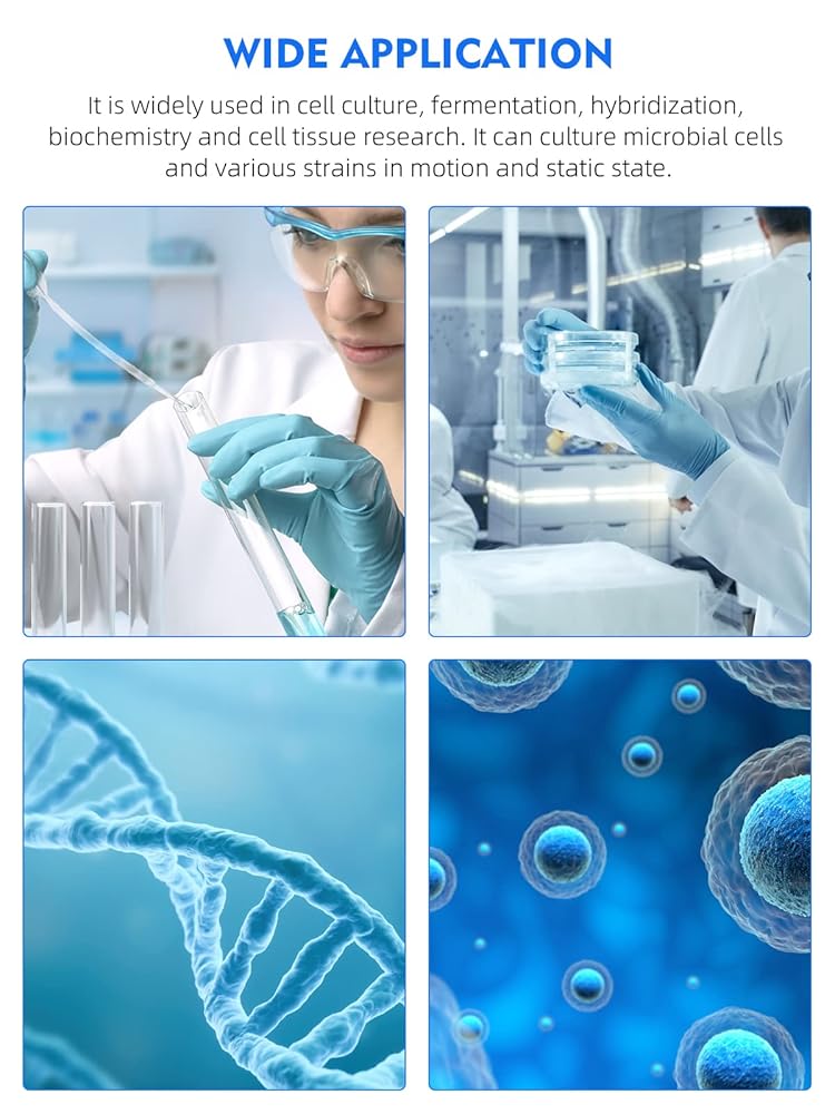 [MULTI-FUNCTION]: The lab Incubator is a 2 in 1 precise instrument, integrating incubator and oscillator. Get 2 functions in one purchase, saving your money and space.