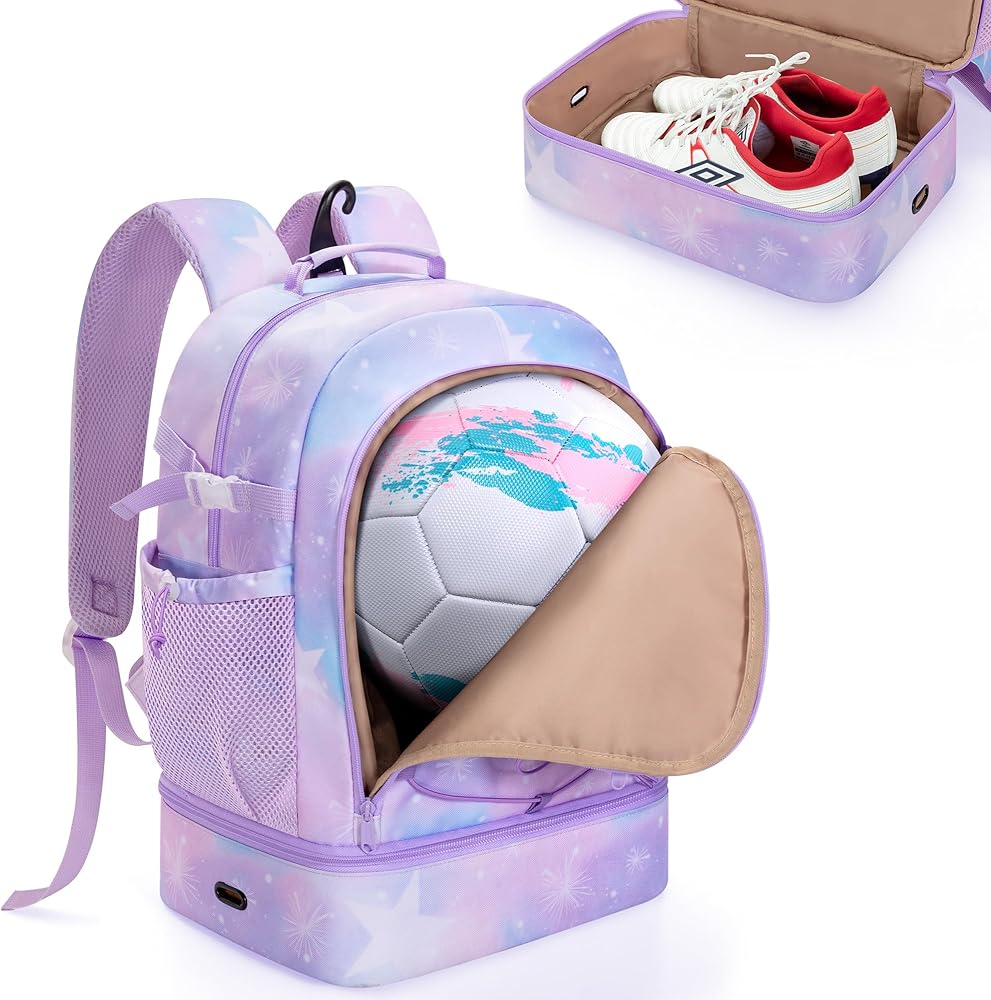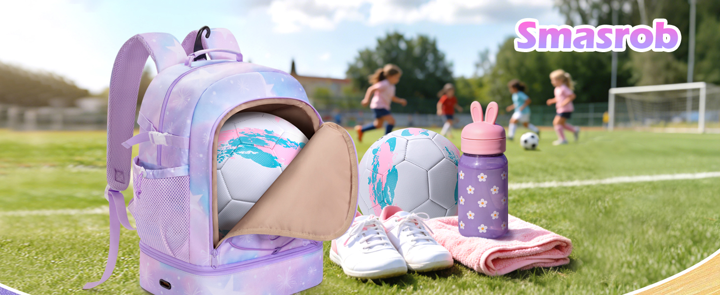 Smasrob Soccer Bags for Girls with Separate Ball Pocket and Shoe Compartment, Sports Backpack for Soccer, Basketball, Volleyball