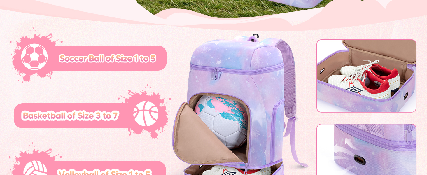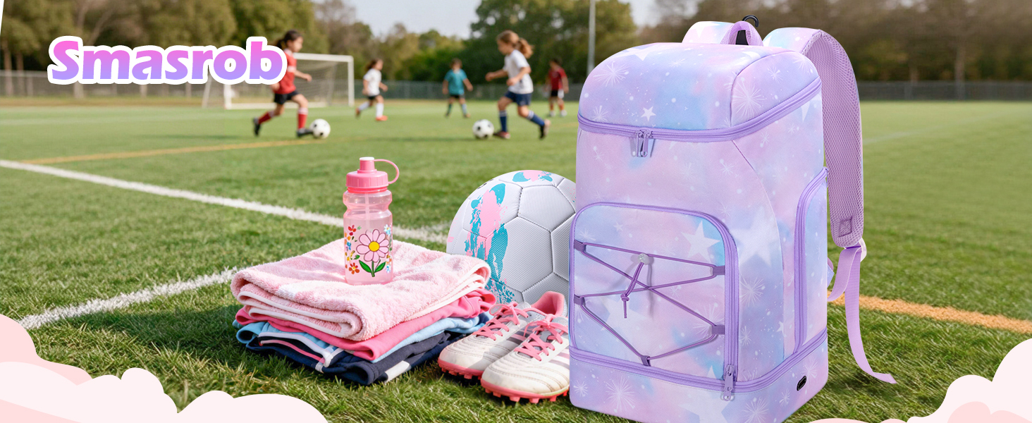 Smasrob Soccer Backpack for Girls with Separate Ball Pocket and Shoe Compartment, Sports Bags for Soccer, Basketball, Volleyball
