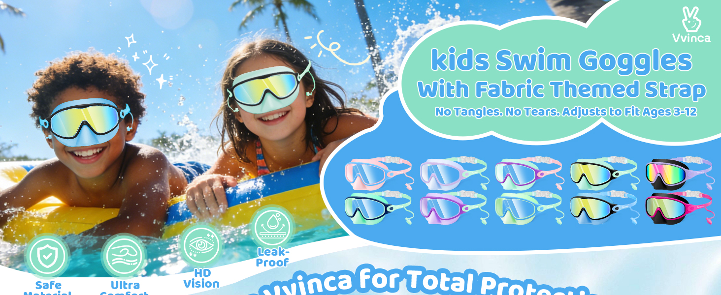 Turn Fear into Fun with the Ultimate 2-Pack Swim Solution Make every splash count with the Vvinca 2-Pack Kids Swim Goggles with Nose Cover. Designed specifically for active boys and girls ages 3-15, this value set is the ultimate solution for parents seeking safety, durability, and convenience. Whether you are prepping for a family vacation or starting swimming training, our masks solve the biggest hurdles young swimmers face. Breathe Easy, Swim Confidently For many children, the fear of water rushing up their nose is the biggest barrier to learning. Our innovative swim mask with nose cover creates a secure, air-tight seal that allows kids to exhale gently underwater. This anti-choking design eliminates the need for manual nose pinching, helping beginners and toddlers overcome anxiety. It is the perfect snorkeling gear for kids to build confidence in the water. Safety First: Shatterproof Protection Active play requires gear that can take a hit. Unlike heavy tempered glass masks that are prone to cracking and unsafe for jumping, Vvinca features shatterproof Polycarbonate lenses. This ultra-lightweight material withstands impact and jump entries, offering superior safety for energetic play. It is the ideal diving mask for both the swimming pool and beach essentials. Double the Value for Busy Families Why stop at one? This 2-pack set is a game-changer for siblings or parents who always need a backup pair. No more fighting over gear or panicking when a pair gets lost. Keep one in your swim bag and one in the car to ensure you are always ready for spontaneous water fun. Comfort Meets Clarity Say goodbye to foggy lenses and painful raccoon eyes. Our HD anti-fog lenses offer a crystal-clear 180° panoramic view, correcting underwater distortion to prevent dizziness. The soft silicone skirt is odorless and hypoallergenic, molding gently to growing faces for a guaranteed leak-proof fit.