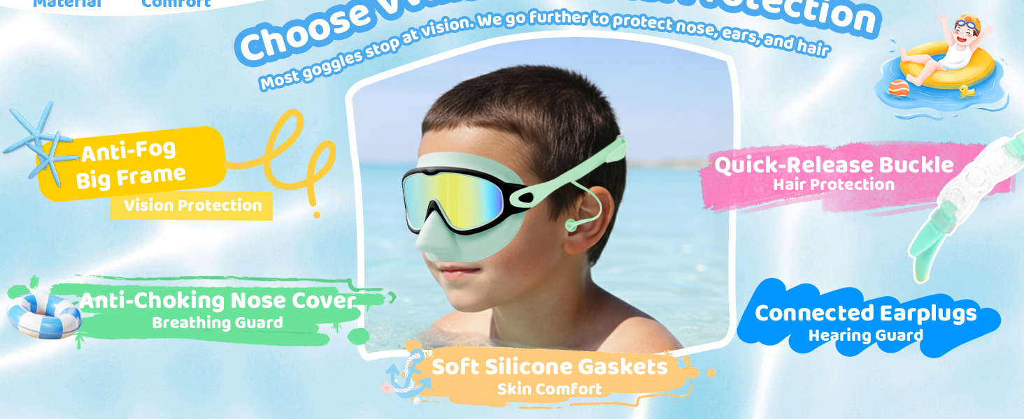 HD Anti-Fog & UV Protection: The panoramic lenses offer crystal-clear, 180° wide vision for underwater exploration. Treated with advanced anti-fog coating and UV400 protection, these swimming goggles kids are beach vacation essentials for protecting eyes against harsh sunlight and chlorine.