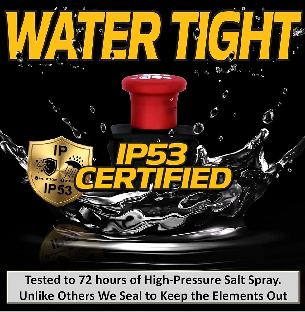 IP53 Weatherproof Protection: 72 Hour salt spray tested for IP53 Watertight certification, keeps dust and moisture out.