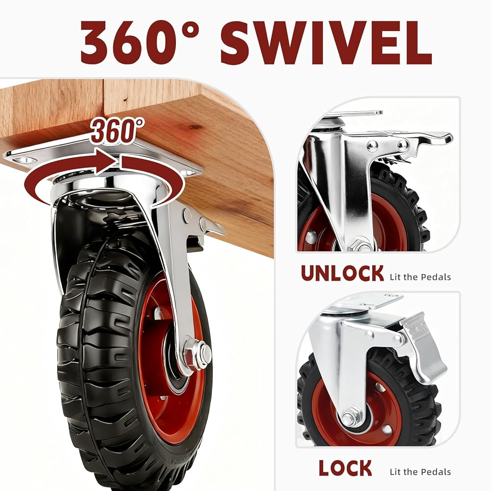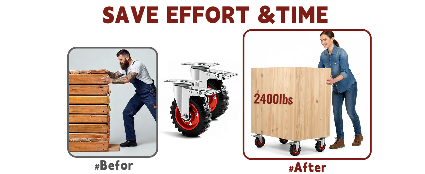 MAX FLEXIBILITY AND SAFETY- Swivel casters rotate 360 degrees which makes turning the mating equipment possible. It's good for transporting light furniture and displays quietly and safely.