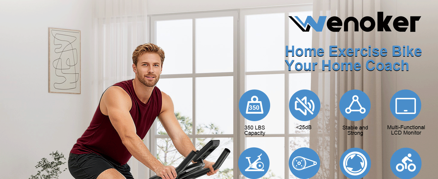 Exercise Bike for Home – 350LB Magnetic Resistance Indoor Cycling Bike, Silent Stationary Spin Bike with App Sync, Adjustable Seat, LCD Monitor, Smooth & Quiet for Cardio Workout