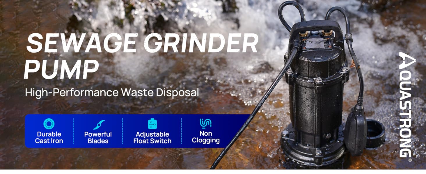 Shreds Soft and Tough Debris: The 1 HP grinder pump features stainless steel blades that effortlessly cut through soft and semi-rigid debris like wipes, twigs, and zip ties to prevent clogs in sewage systems and sump tanks. Note: avoid rubber items or thick towels.