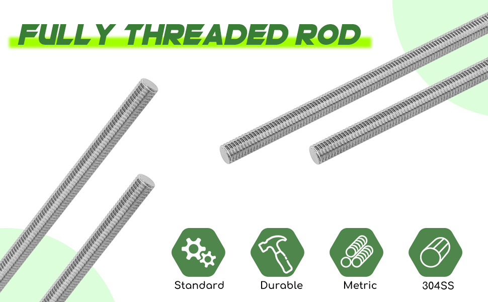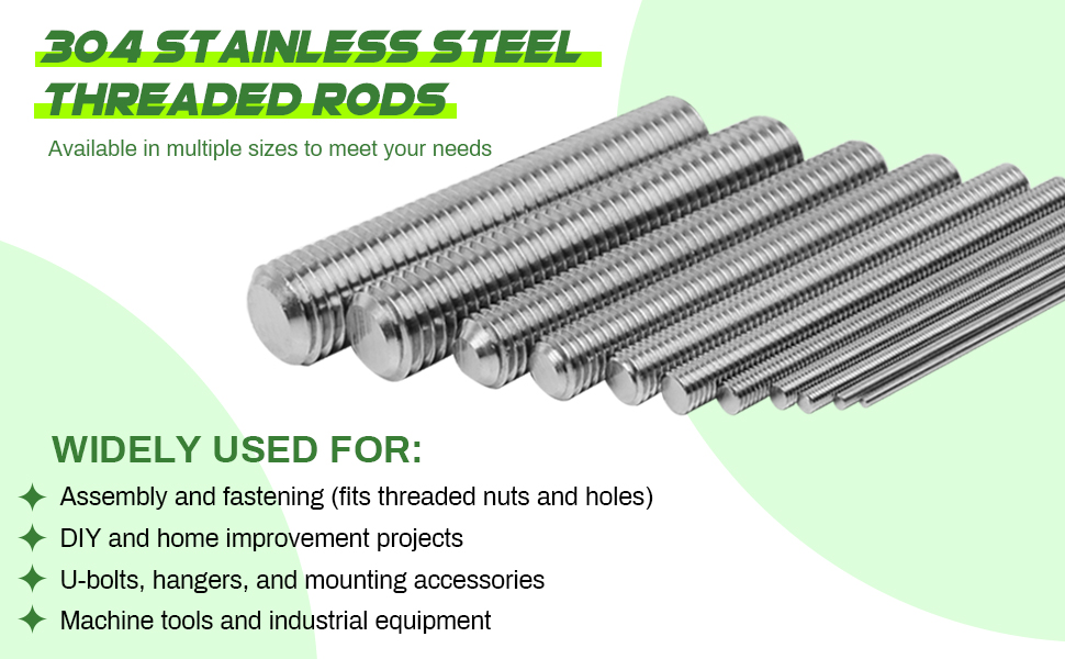 【Easy to Use & Customize】Simple installation by screwing into tapped holes or using with nuts and washers. The rod can be easily cut, drilled, or shaped to meet various DIY or industrial needs.