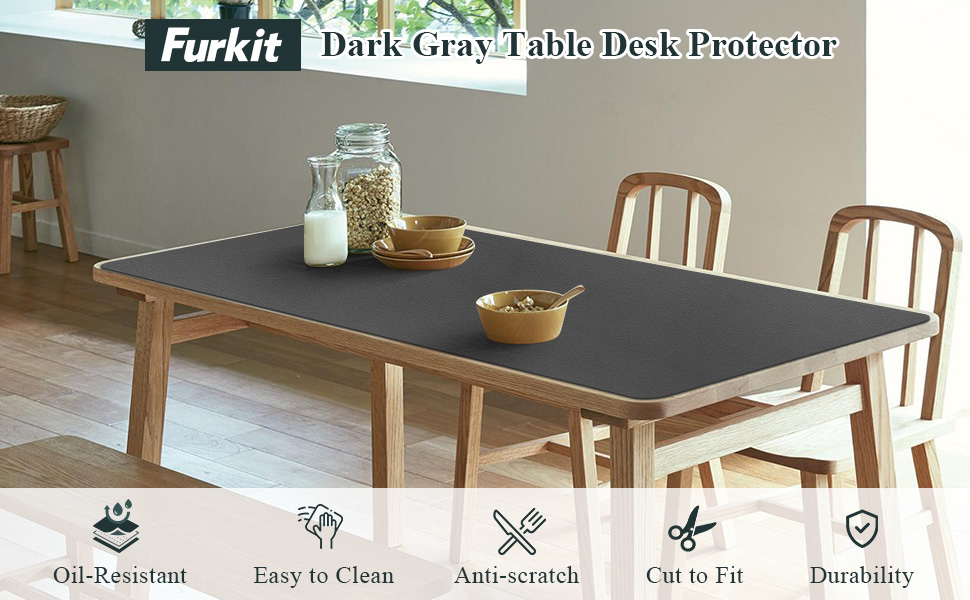 Anti-Scratch & Hide Defects: Made from durable PVC, this plastic tablecloth protector offers reliable protection against daily abrasions, keeping your table pristine and scratch-free. Its dark gray color conceals imperfections, providing a smooth, polished look. Ideal for covering minor scratches and uneven surfaces, this mat adds a stylish touch while offering an elegant and practical solution to refresh your table