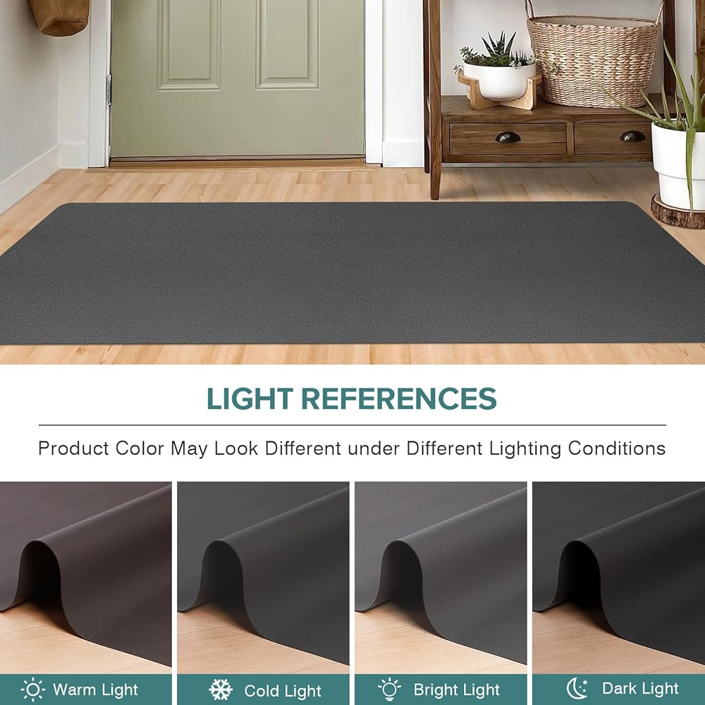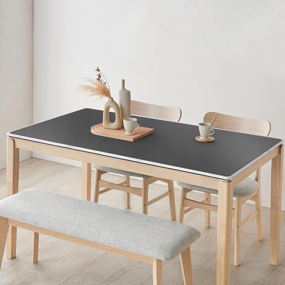 Luxury Leather-Look & Waterproof: The gray leather-textured PVC dining table protector enhances your table with a touch of elegance and sophistication. The non-slip design keeps it securely in place, while its water-resistant feature protects your surface and keeps it clean. Combining style and practicality, this table cove is a perfect addition to any dining or workspace