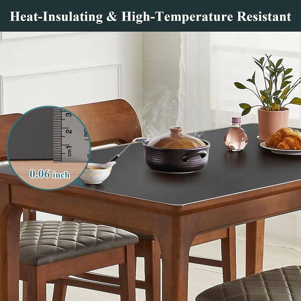 Safe Material & Long-Lasting: Crafted from odorless PVC material, our premium table top protector prioritizes your family's safety and health. The 1.5mm thick design offers exceptional durability, easily withstanding daily use and pressure. This sturdy mat not only protects your table but also adds a clean, stylish touch to your dining or workspace, ensuring it looks great and performs well for years