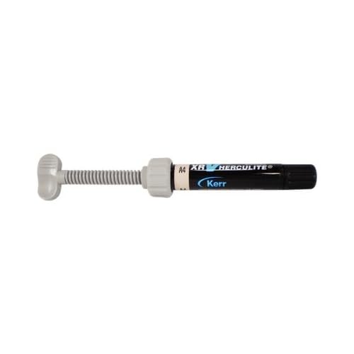 Herculite XRV Microhybrid Composite - Enamel A4 - 5g Syringe. Light-cured composite material suitable for anterior and posterior restorations. Excellent handling properties for anatomical shaping without composite slumping. Demonstrates high wear resistance, long-lasting luster, and smoothness.