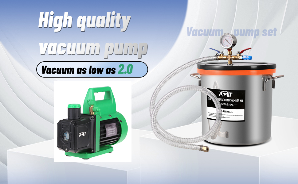 Complete Degassing Kit: PBMT vacuum degassing kit includes a 4.5 CFM vacuum pump, 5 gallon vacuum chamber with tempered glass lid, reinforced rubber hose, and essential accessories. Everything you need for degassing is conveniently organized in one package
