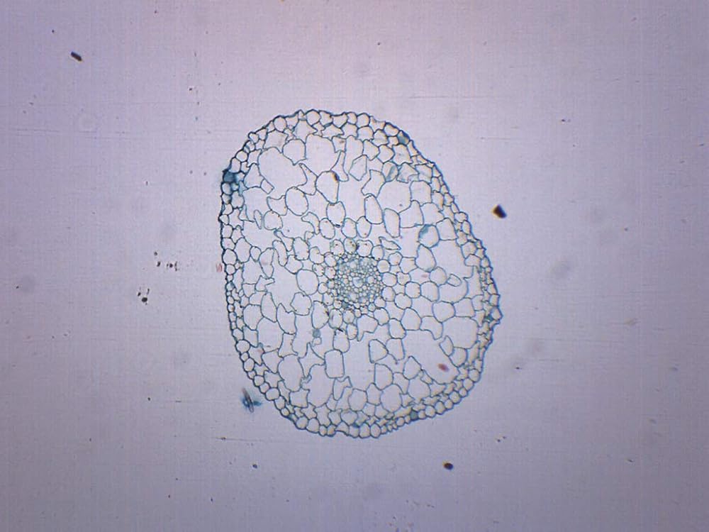 Classroom pack of ten prepared slides with elodea stem cross section. Elodea is an aquatic weed