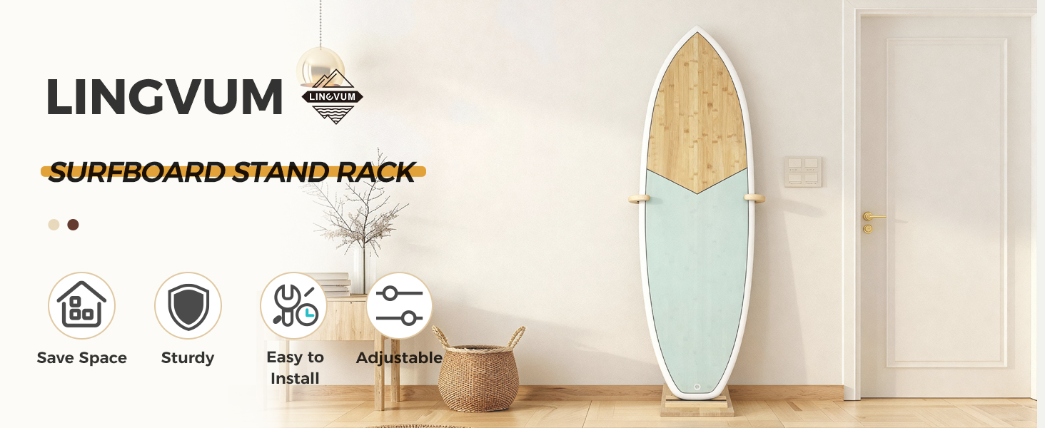 WHY CHOOSE LINGVUM --- Our vertical surfboard racks provide a new way for surfboards to store and display, saving space in your room. If you have any problems, please contact us and we will provide you with the best solution