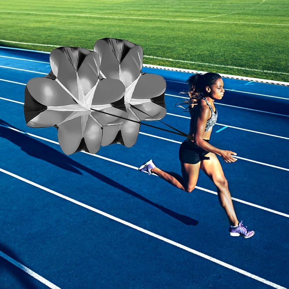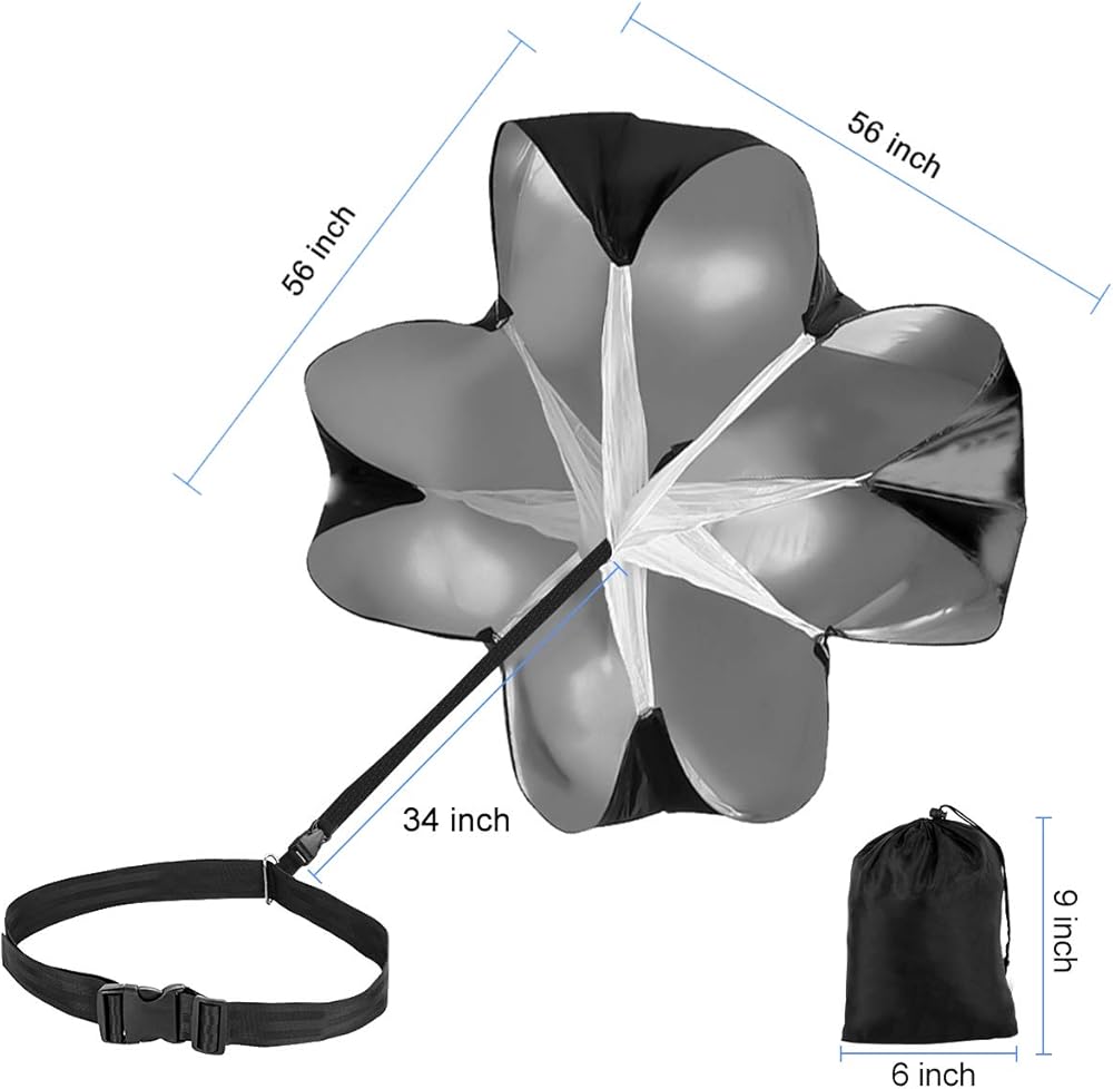 Dual 56-Inch Resistance Parachute for Intensified Training: Two 56-inch running parachutes generate 25-50 lbs of resistance (resistance spikes as you speed up) to supercharge acceleration, strength, and stamina—perfect for athletes in track, football, basketball, and beyond.