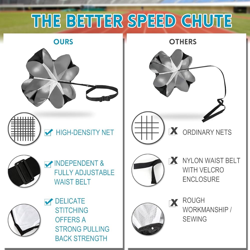 Versatile Training Tool: Nail speed drills, build strength, or boost endurance—this dual-speed chutes setup adapts to your goals. A pro-grade pick for athletes ready to level up their game, and a standout gift for fitness lovers.