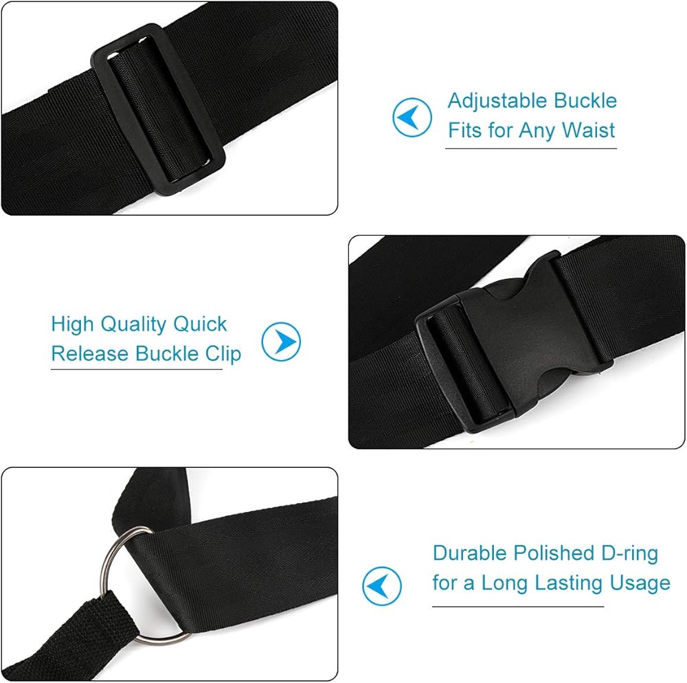 Secure & Flexible 360° Belt: Heavy-duty adjustable nylon belt (fits 20-42" waists) with a quick-release buckle. The 360° rotating ring lets you sprint, cut, or pivot freely—no tangles, no restrictions—ideal for dynamic drills.