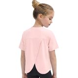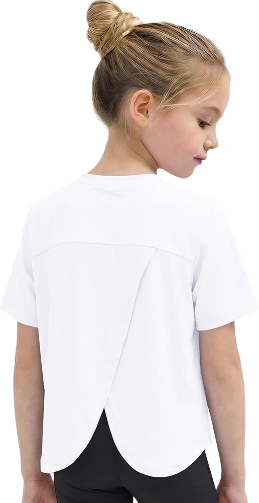 Split Back Athletic Design: This Wenlia girls sports t shirt features a classic crewneck, short sleeves and a stylish split back overlap design that improves ventilation and freedom of movement. The curved hem provides a sporty silhouette.
