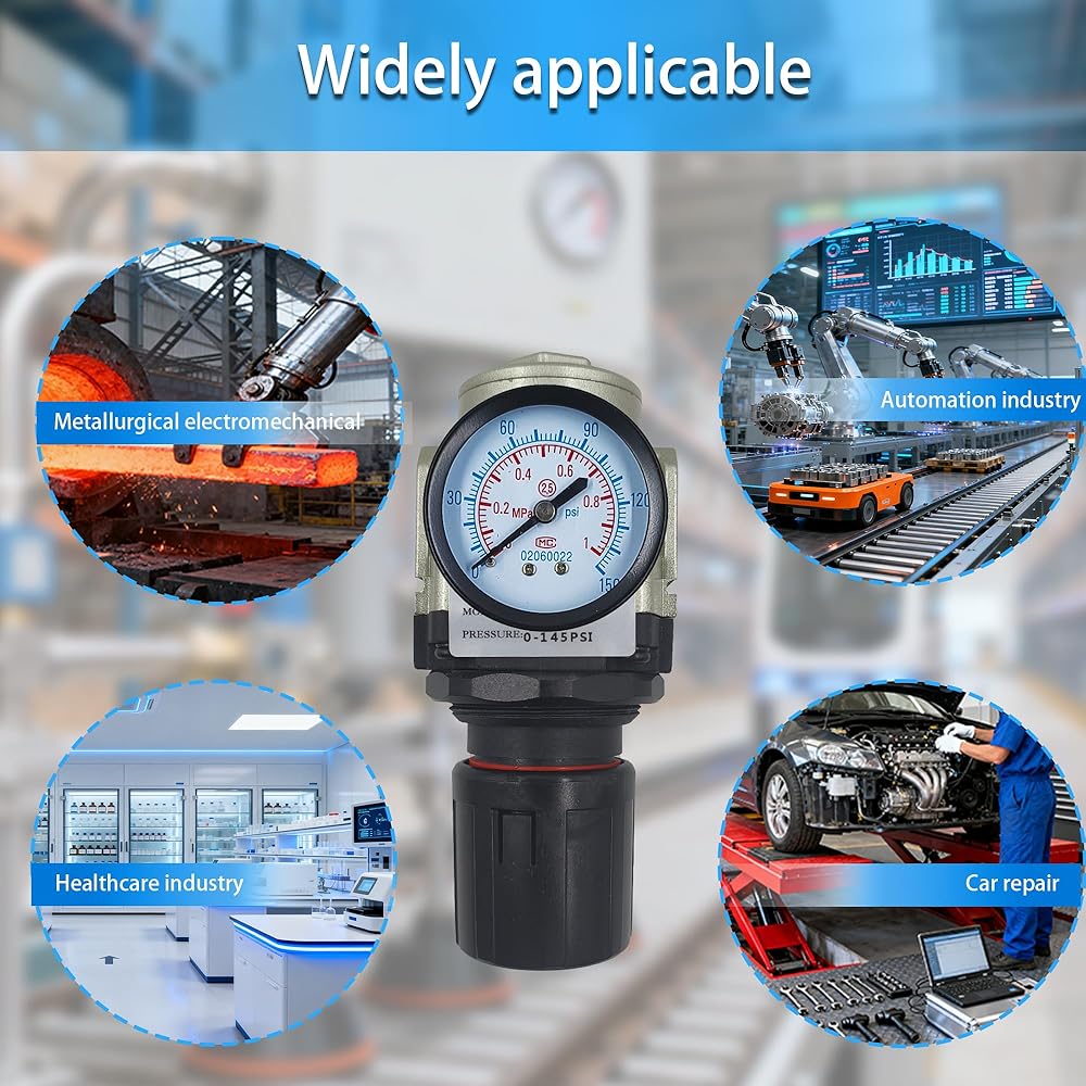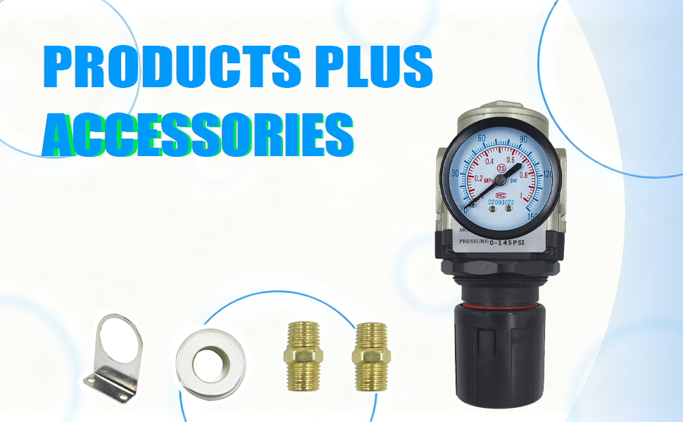 HengMinLingTong AR3000-03 Air Compressor Pressure Regulator with Bracket and Pressure Gauge 3/8-inch NPT Female Thread Connection 0-150 PSI Adjustable Equipped with 3/8-inch NPT Threaded Fittings