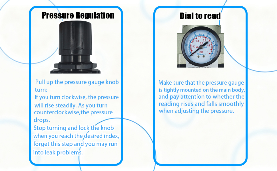 - When regulating pressure, pull up the rotary knob and rotate clockwise to increase the pressure and rotate anticlockwise to decrease the pressure