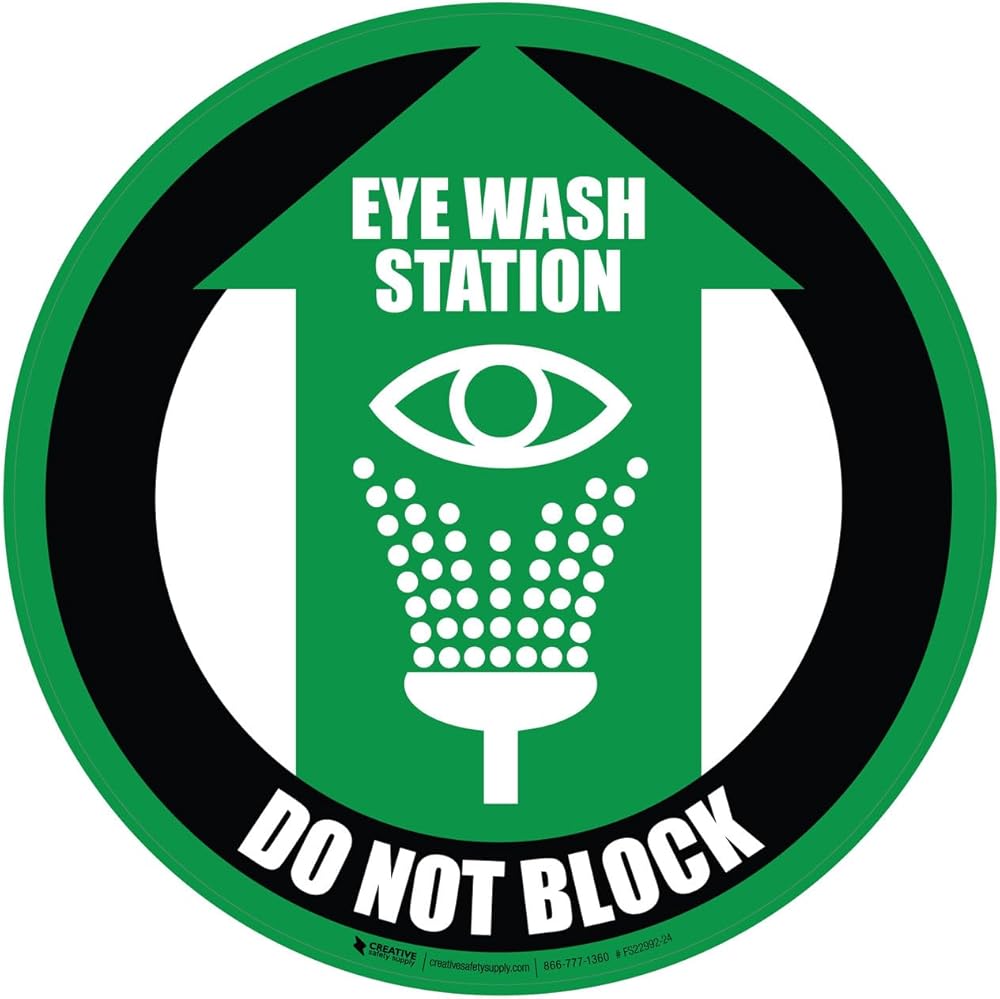 This Eye Wash Station Do Not Block Circular - Floor Sign features a high contrast and bold design that can be easily seen from a distance, and is constructed using tough, industrial-grade materials, allowing it to survive in the most severe work environment. Our floor signs are engineered to not only withstand constant foot and forklift traffic, but chemical, water, and UV damage as well. We've made sure that every floor sign is designed to provide years of service, no matter the climate or surroundings.