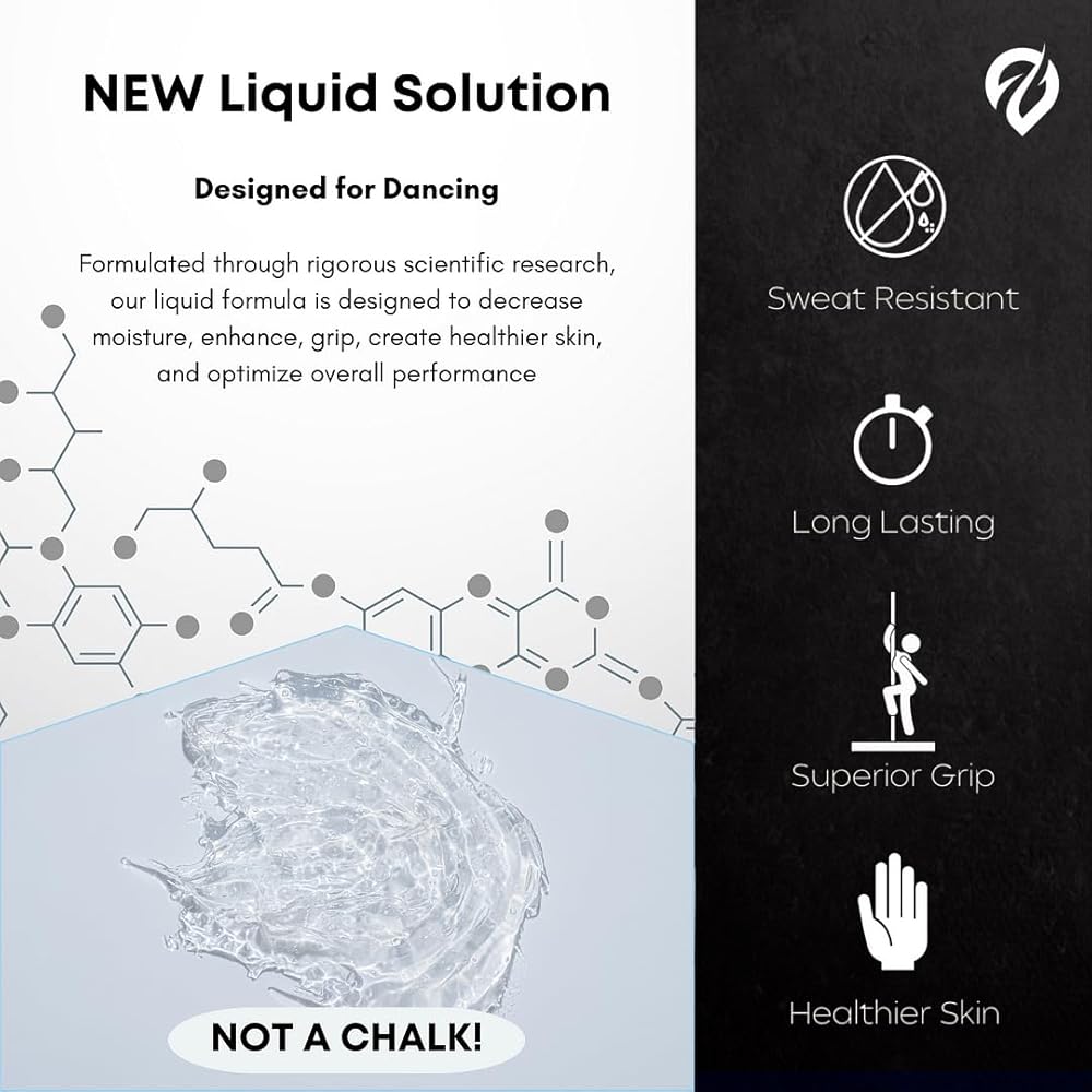 Superior Grip for Pole Dancing – Our pole dancing liquid chalk alternative creates a tacky surface on your palms and fingers, enhancing friction and control for effortless turns, leaps, and intricate movements.