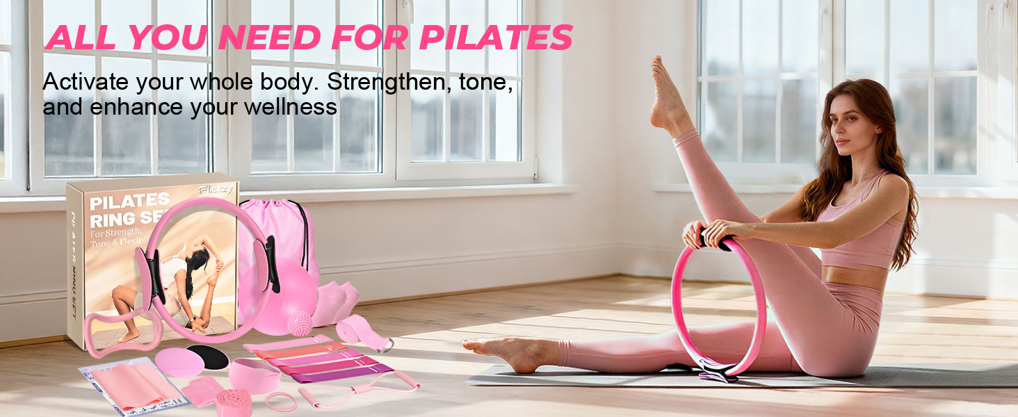 15-Piece All-in-One Pilates Set: Comprehensive At Home Pilates Kit for Home & Gifting