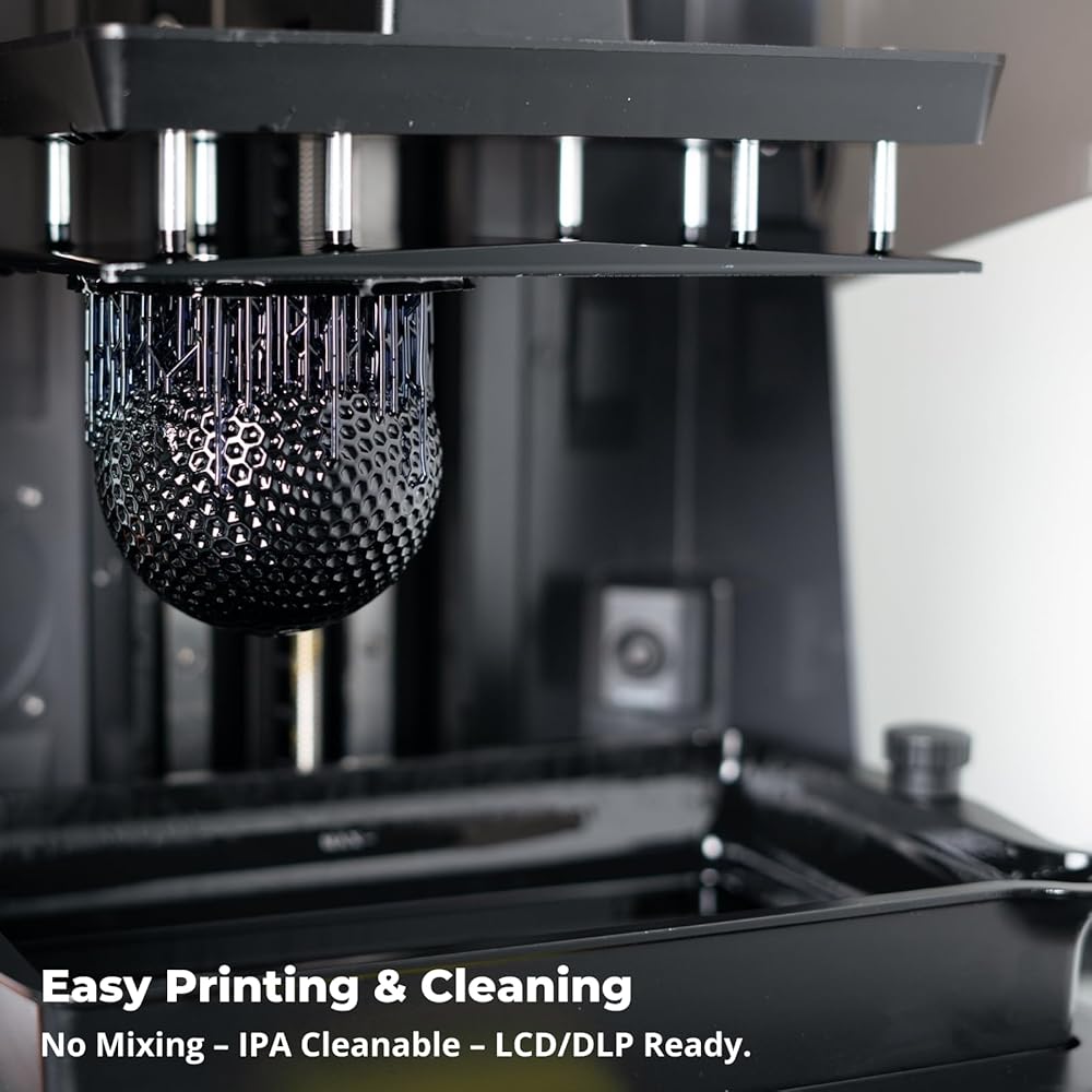 Easy Printing with No Special Cleaning Required – Unlike other elastomers that require A/B mixing or complex processing, Rebound 55A Black 3D printer resin prints on standard LCD and DLP 3D resin printers (405nm) and cleans with standard isopropyl alcohol methods.