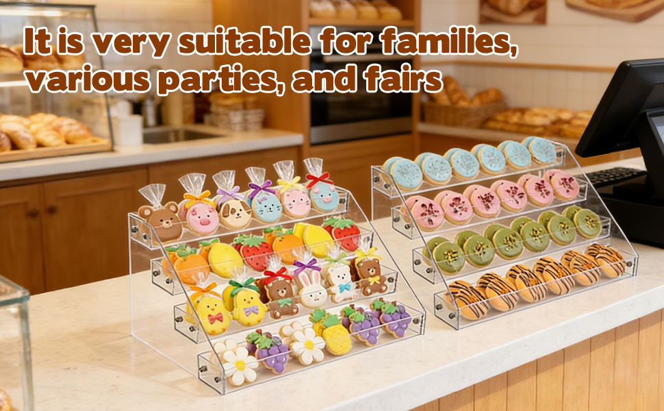 Easy Installation: This cookie display stand is pre-drilled and screwed for easy and secure installation. It is also easy to disassemble for cleaning or storage. This cookie display rack is perfect for home baking enthusiasts, bakeries, cafes, and parties; easily transforming your baking countertop, kitchen counter or party table into a professional display space