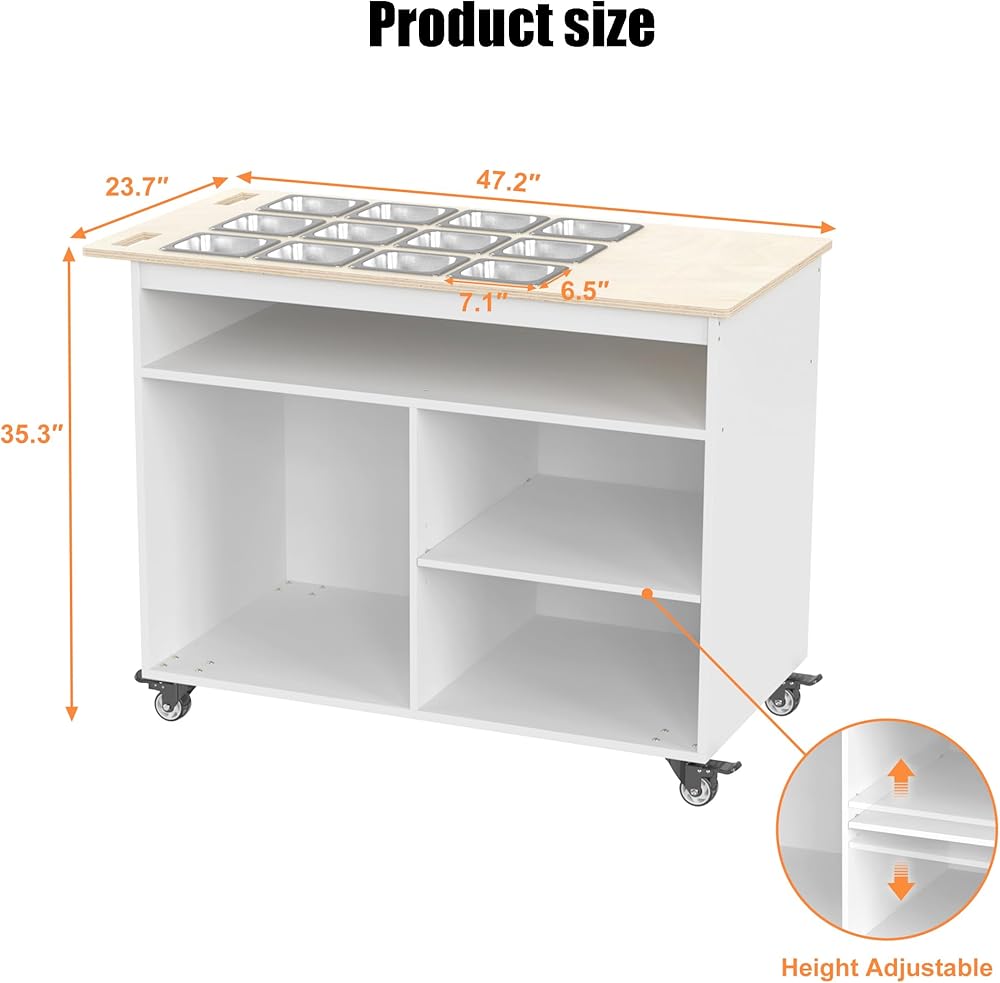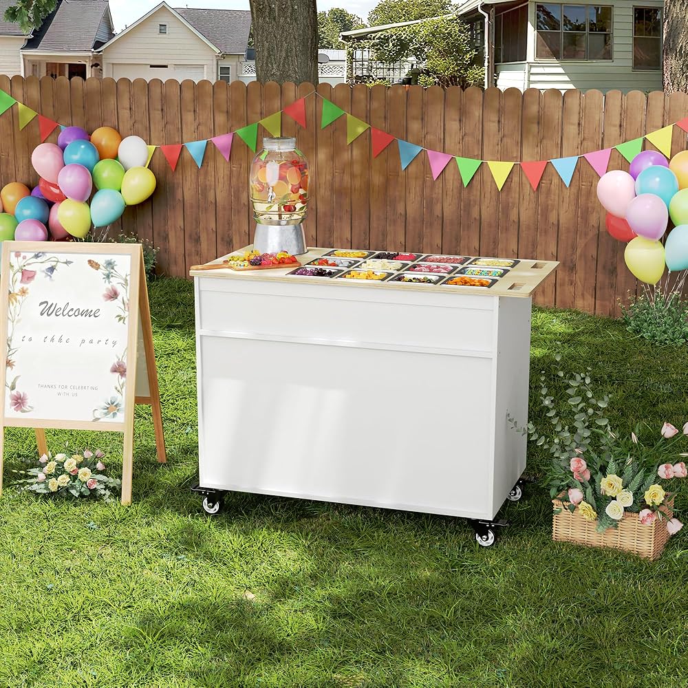 Extra Storage Shelves: Open shelves underneath provide convenient space for storing plates, utensils, napkins, drinks, or party essentials, keeping everything within reach