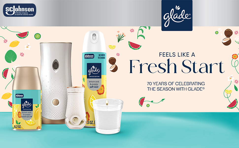 - Includes two Glade Lemon Zest & Poppy PlugIns scented oil refills infused with bright, revitalizing springtime scents