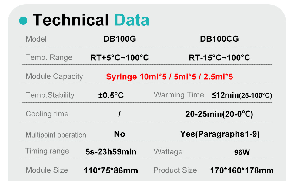 The LED digital display allows independent temperature and time settings, ensuring easy operation and readability. The metal block offers three heating well sizes: 5x1ml, 5x2.5ml, and 5x5ml, accommodating various sample volumes. It is widely applicable for PRP/PPP gel preparation, sample preservation, electrophoresis pre-denaturation, and more.