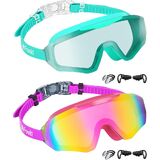【Anti-Fog & UV Protective Lenses】 The lenses are equipped with reliable anti-fog technology, ensuring a consistently clear view underwater so kids 8-16 can move with confidence and comfort. The vibrant lenses also offer 100% UV protection, effectively shielding eyes from the sun's rays during outdoor water play. Let kids enjoy their time in and out of the water with safety, clarity, and style.