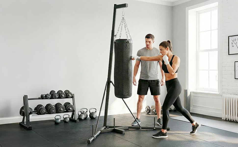 • Extra Weight Support: Integrated 1" weight plate pegs allow you to add plates for enhanced stability, keeping the boxing stand firmly grounded during powerful boxing, MMA, or kickboxing workouts in your home gym.