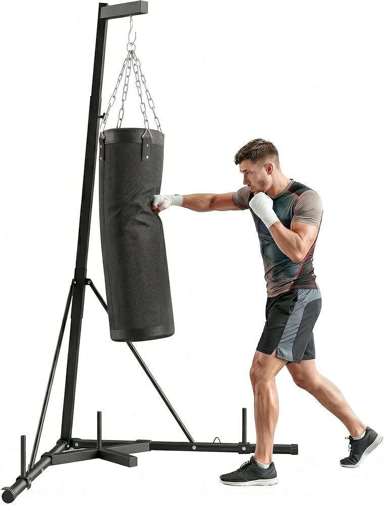 • No Drilling, No Ceiling Mount Required: The freestanding, drill-free design allows you to set up your punching station anywhere - garage, basement, or apartment - without damaging walls or ceilings. Great for renters and flexible home workouts.