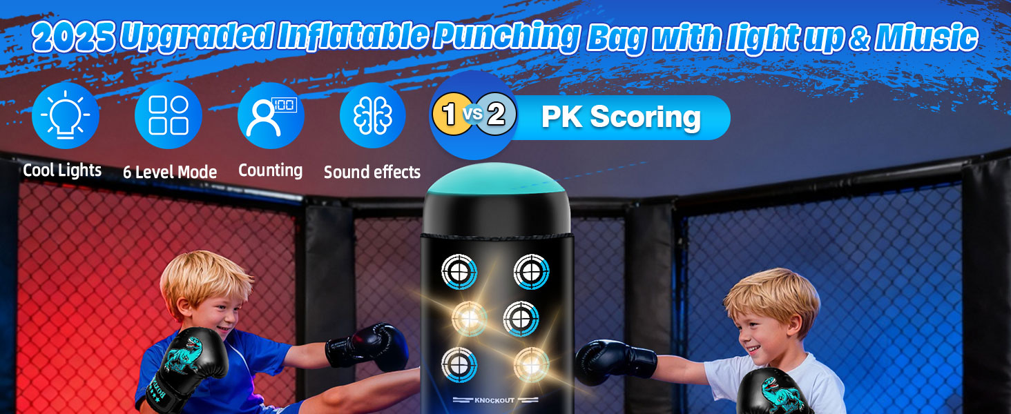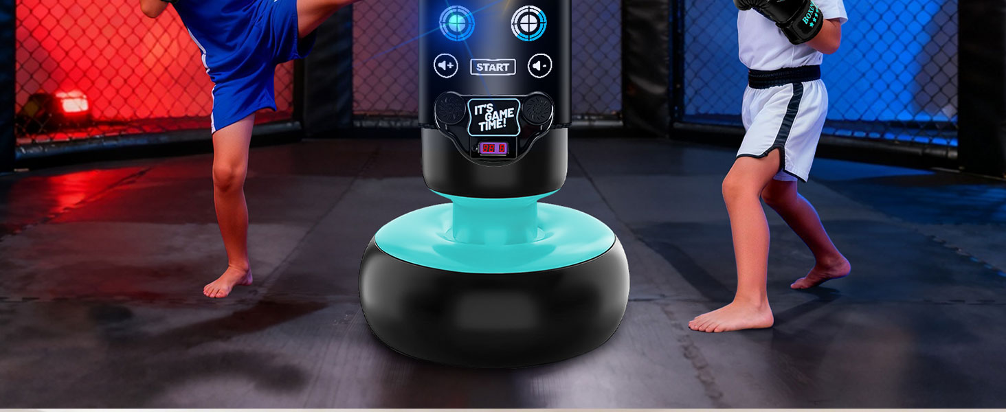 Interactive Music & Light Punching Bag: Punching bag + score counter + interactive music & lights! Kids jab to the rhythm, with lights flashing upon each hit—every punch feels like a level in a video game, making them fall in love with exercise. Use music, lights, and gamified scoring to "win back" children from phones and tablets. Build Focus Through Play.