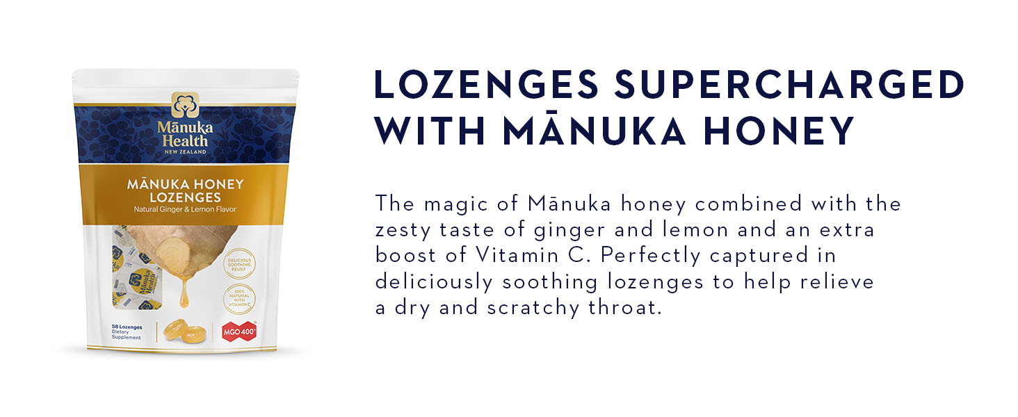 Lozenges made with our high grade MGO 400+ Manuka Honey, certified for natural methylglyoxal content (400mg/kg)
