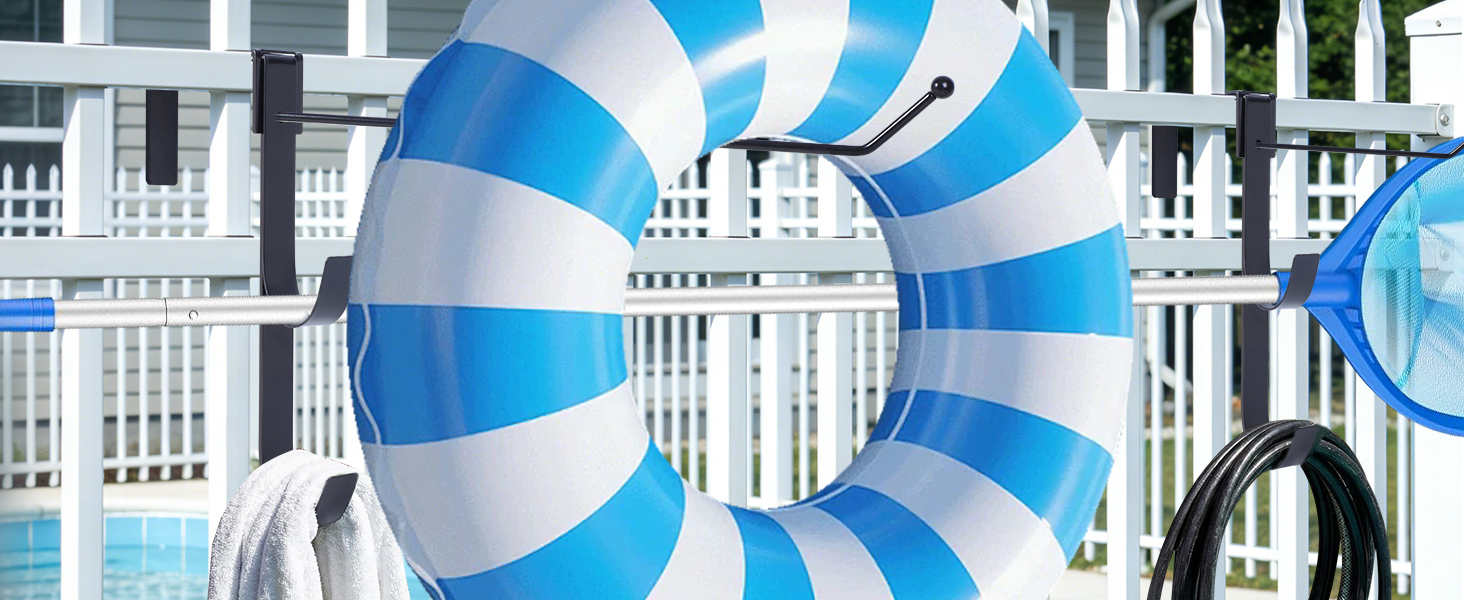 Pool fence hooks is easy to install,and stable and durable,suitable for installation on most swimming pool fences,a great helper for organizing and storing indoors and outdoors