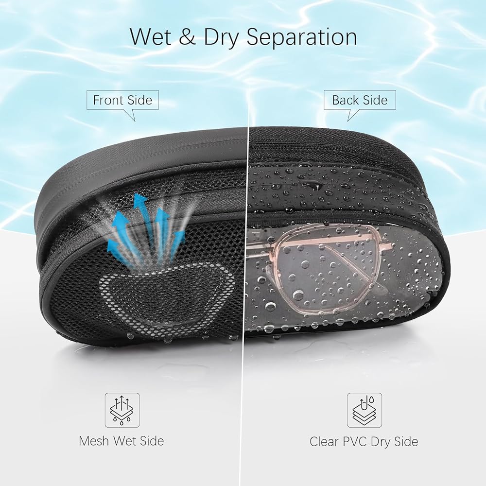 • EASIER PACK-UP, FEWER MIX-UPS: Separate pockets help reduce the chances of wet goggles touching dry eyewear or accessories. Great for swimmers who carry both goggles and glasses and want a neater bag between pool sessions.