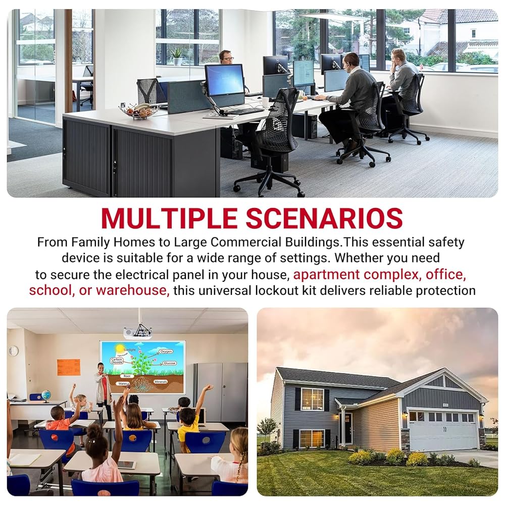 VERSATILE USE ACROSS HOME AND COMMERCIAL BUILDINGS: This universal safety device is suitable for a wide range of environments. Protect fire alarm and emergency system breakers in houses, apartments, offices, schools, warehouses, and industrial facilities, ensuring compliance and peace of mind everywhere.