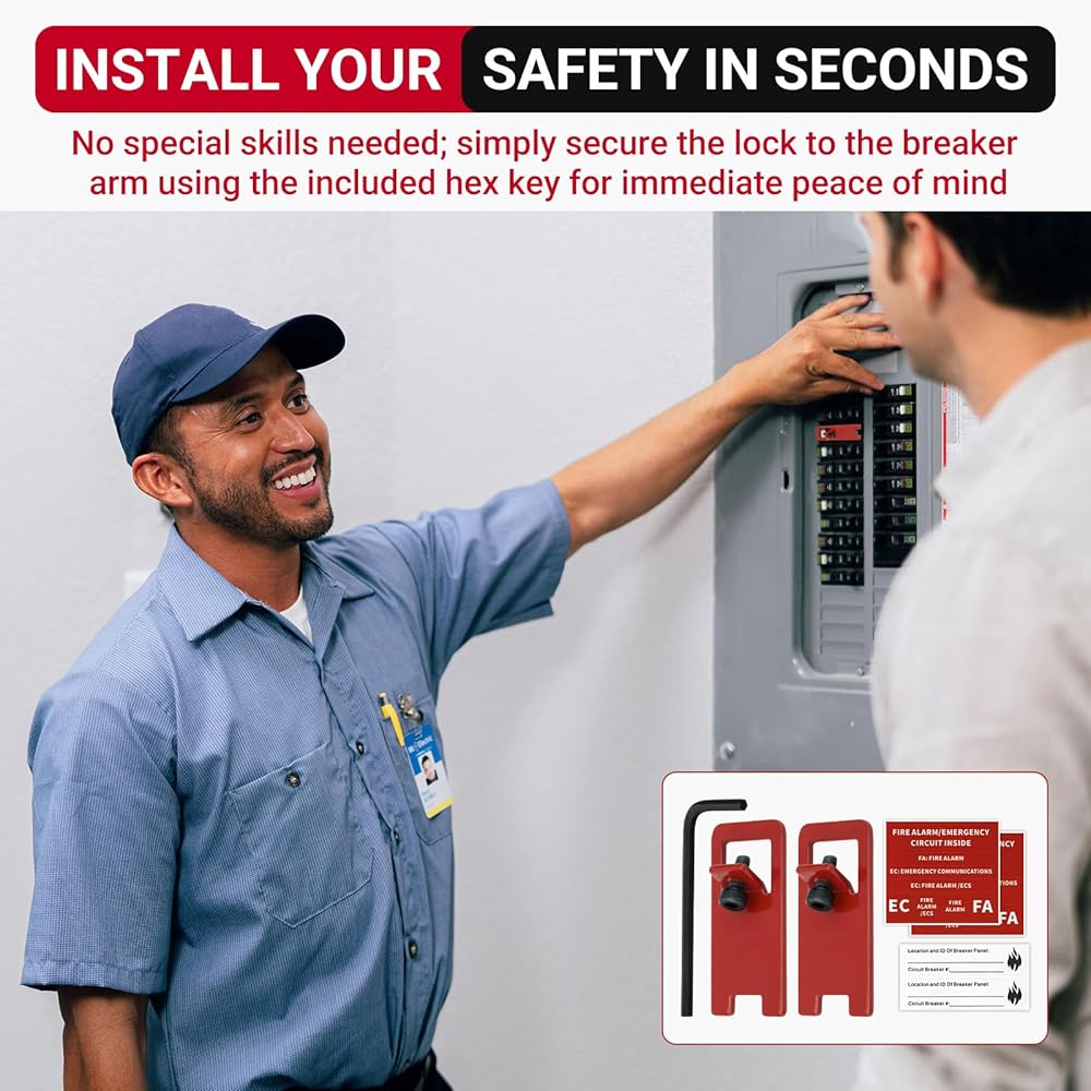 PREVENTS ACCIDENTAL FIRE ALARM SHUTDOWN: Ensure your life-safety system is always operational. This lock physically secures the circuit breaker in the ON position, preventing catastrophic, unintentional disconnection during an emergency.