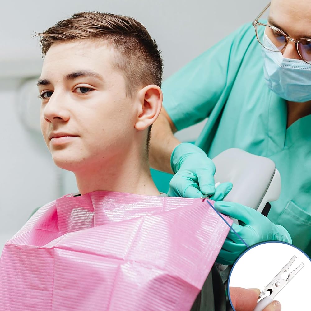 What You Get: You will get 3 pcs dental bib clips with a metal clip to securely hold your bib/napkin in place without slipping. This reusable napkin holders's durable construction ensures long-term use in clinics and kitchens