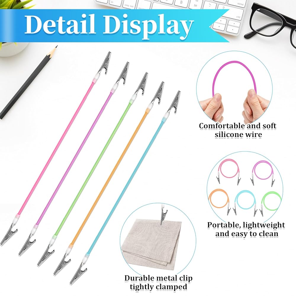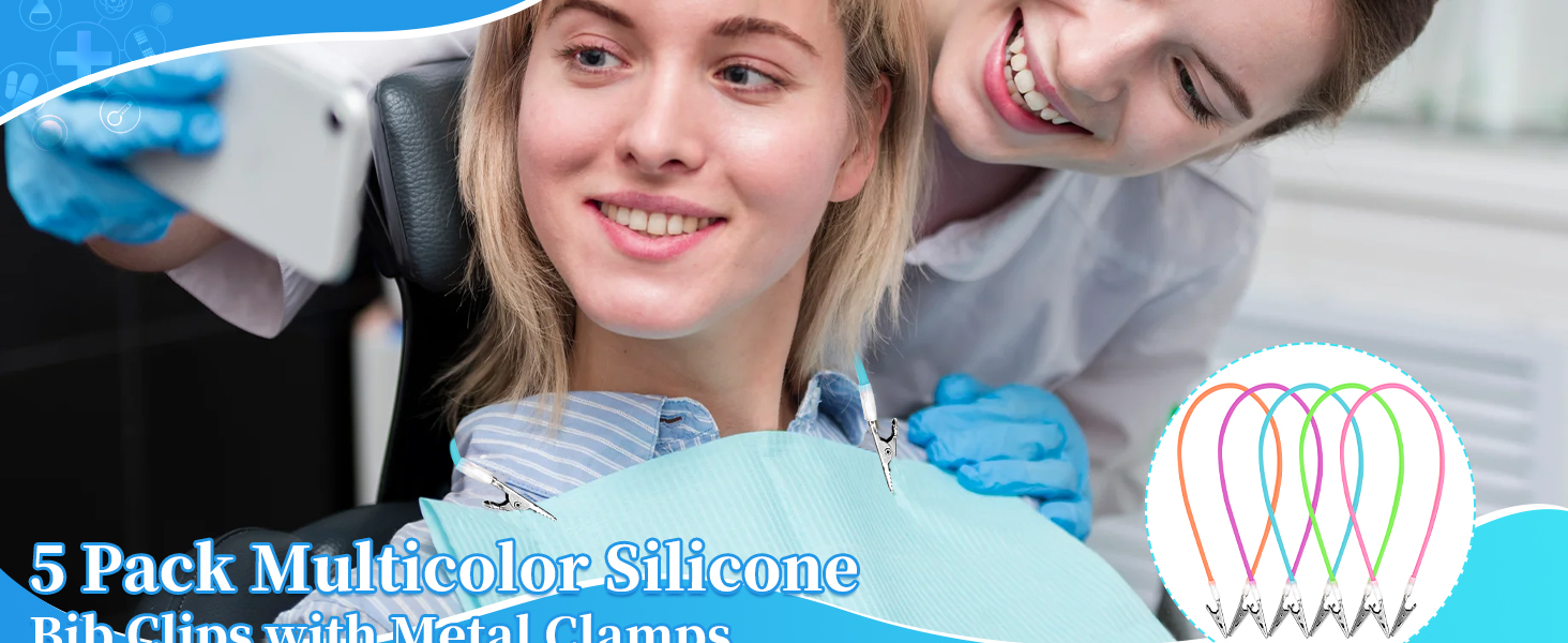 5 Pack Multicolor Silicone Bib Clips with Metal Clamps – Dental Napkin Holder for Adults and Kids, Flexible Neck Apron Clips for Dental Clinics, Feeding, Hair Salon, and Home Care Use