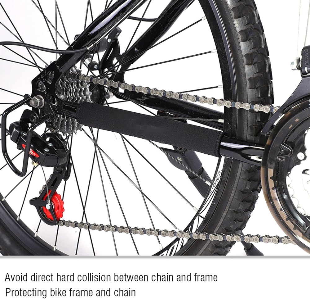 Specification: The set includes 2pcs cycling frame chain protectors, which can simultaneously protect both sides of the frame. Cycling frame chain protector is suitable for multi speed bicycles and can also be used for some single speed bicycles